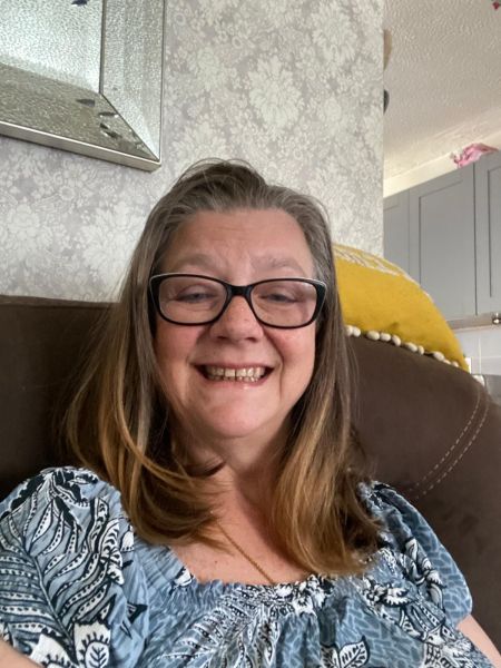 5'8" 11½st Blue Brown Shoulder length DD Trimmed