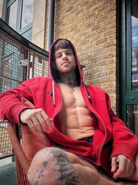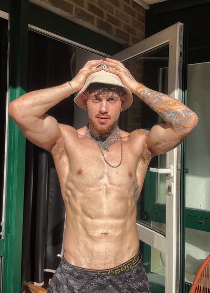 Straight fit tattooed male.
